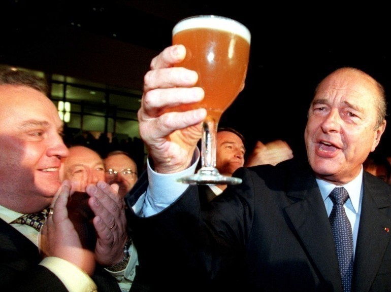 En visite à Strasbourg, le 20 janvier 1999, trinquant à la santé de tous les Français. (BEP/CEDRIC JOUBERT/LES DNA)